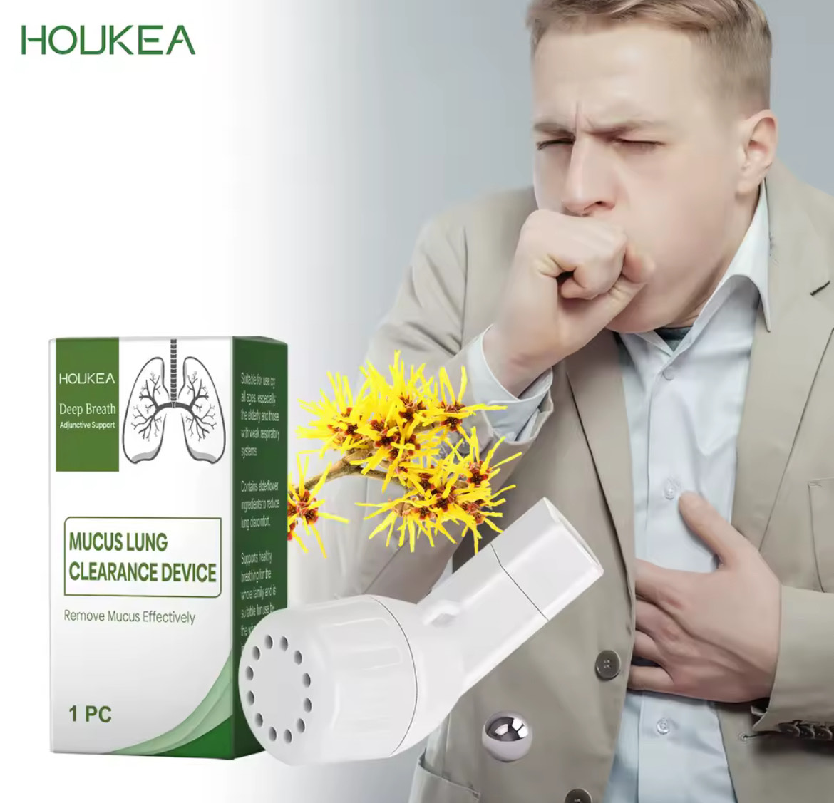 Dispositif HOUKEA de nettoyage pulmonaire pour éliminer les déchets des voies respiratoires, soulager la toux et améliorer la capacité pulmonaire. Appareil d'expansion pulmonaire pour une meilleure respiration et exercices thérapeutiques.