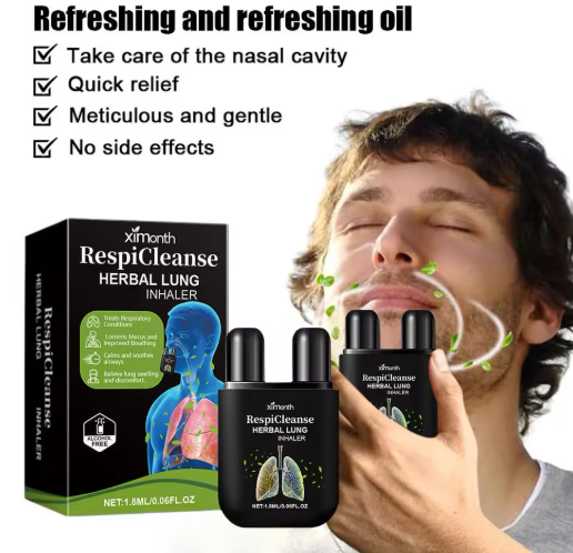 Inhalateur pulmonaire à base de plantes Xifmonth RespiCleanse. Formule naturelle pour nettoyer les poumons, améliorer la respiration et purifier les voies respiratoires. Soin respiratoire aux extraits de plantes médicinales pour une respiration saine et profonde.